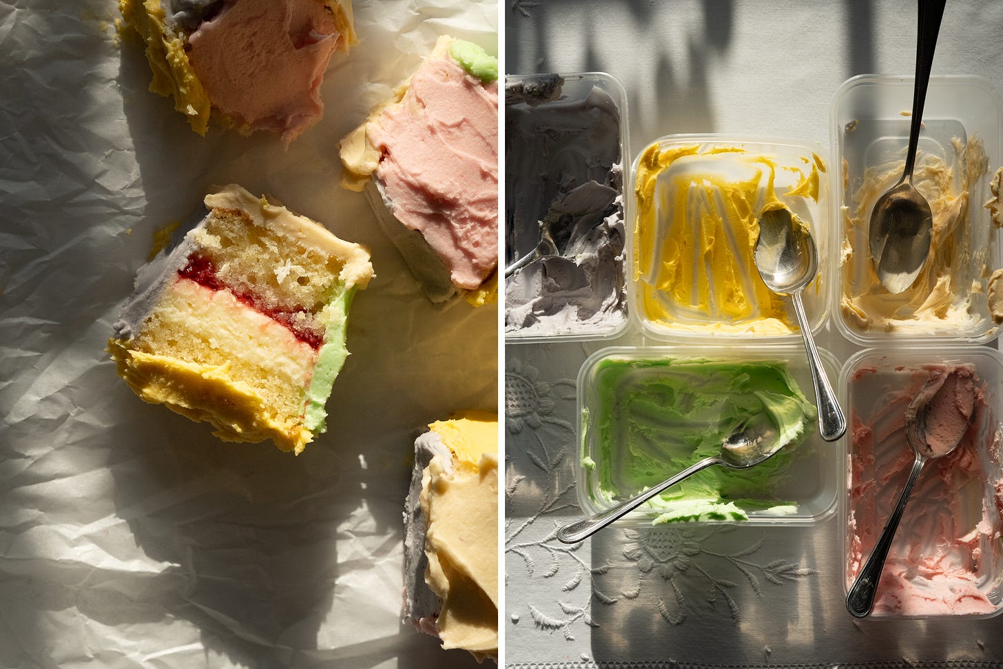 If you make just one thing from this menu, let it be this. The inspiration came from a bakery on instagram, where I spotted an amazing cube cake clad in buttercream and a riot of colors. Taking this concept as my starting point I decided to create mini versions and they’re not just adorable, they’re dangerously addictive. There’s nothing better than happily munching your way through an irresistible assortment of dainty mouthfuls, especially when they consist of a sponge soaked in lemon syrup, layered with jam and salted honey buttercream and then enrobed in more buttercream. Sheer indulgence? Absolutely.
