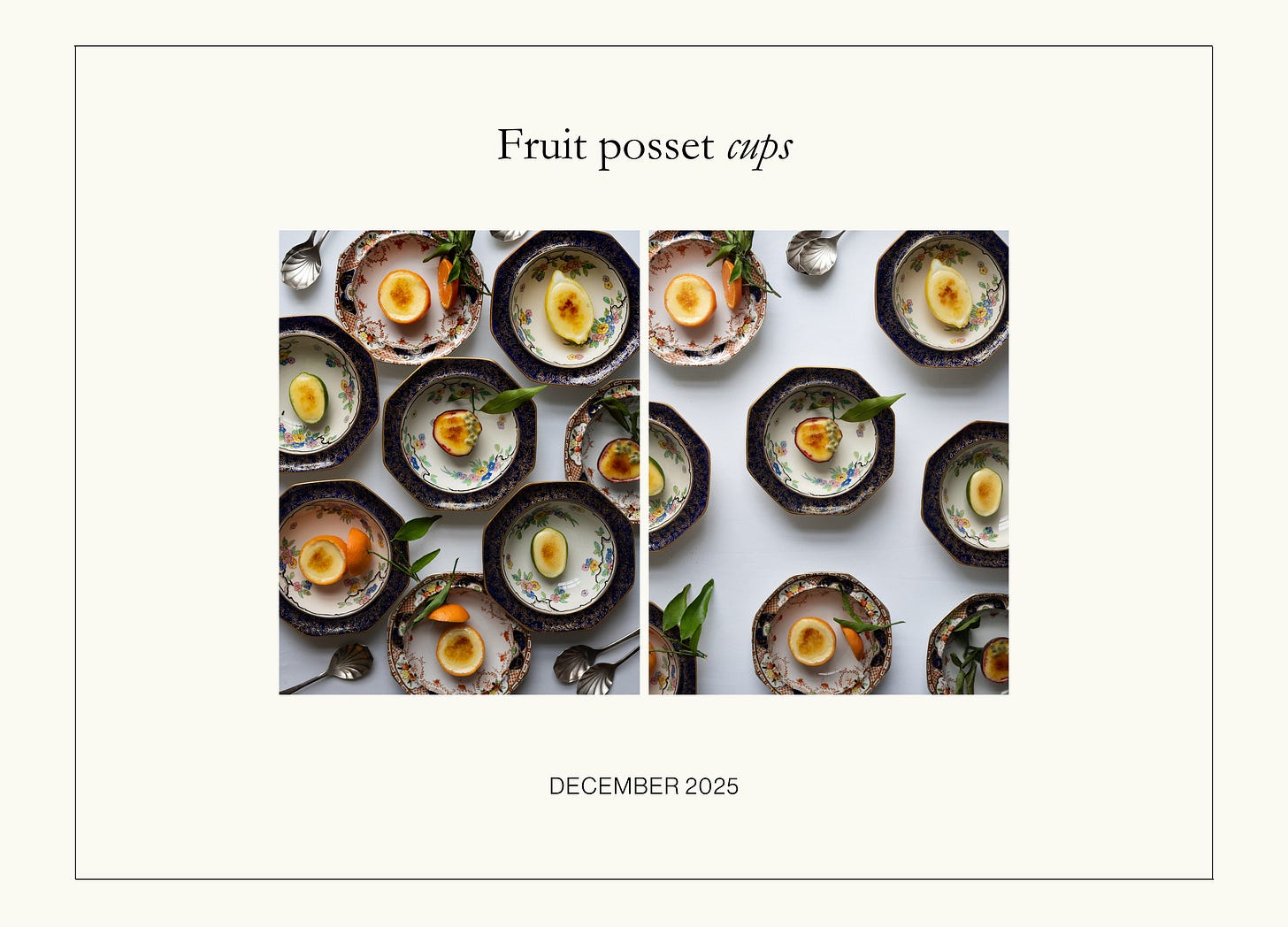 Fruit cup possets have become a Christmas tradition and one of the most appreciated desserts I prepare. This can be infuriating, not because they lack distinction, but because something so creamy, citrus-sharp, and deliciously indulgent has no right to be quite so effortless.